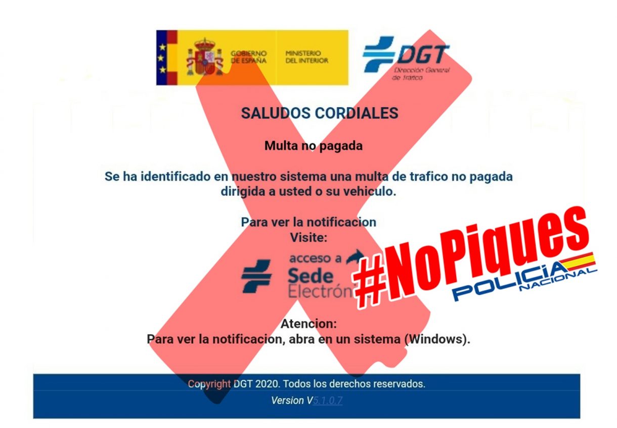 A diferencia de otras ocasiones la voz de alarma no la ha alzado la propia Dirección General de Tráfico sino que ha sido la Policía Nacional la que a través de sus perfiles en redes la que ha avisado del envío de correos fraudulentos avisando de una falsa multa de tráfico de la DGT pendiente de pago.