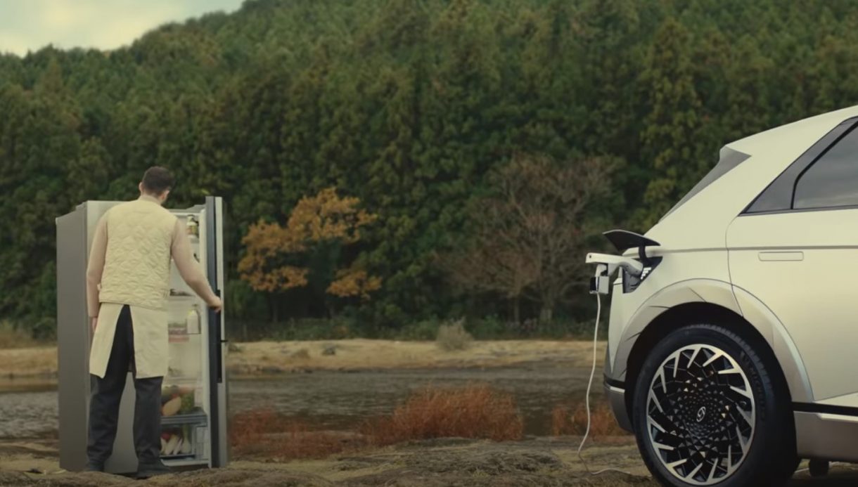Con un toque de humor y abusando en cierta medida de la exageración, el fabricante coreano nos muestra cómo su nuevo eléctrico te permitirá disfrutar de tu equipo de fútbol favorito en una pantalla gigante en mitad de un bosque, o evitará que salir de acampada sea sinónimo de «comer de Tupper». Lo único que tienes que hacer es enchufar la televisión o el horno a la toma de corriente del IONIQ 5. Y ¿por qué no tener también a tu disposición la nevera de casa cuando estas de camping?